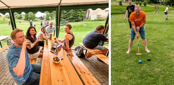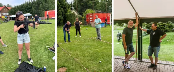 Sportovní odpoledne nabízelo tolik rozmanitých aktivit, že si každý přišel na své. Od pétanque a kroketu, přes badminton a mölkky až po střelbu z airsoftové pistole, kterou zajistil šikovný Jarda z Navisysu. Kdo by řekl, že kromě monitoringu spotřeby energií má také přesnou mušku? Možná nám příště poradí, jak ušetřit energii při míření na terč!