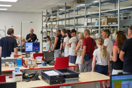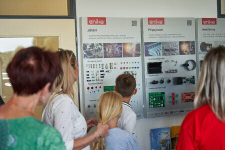 Ve 13 hodin se dveře Eniky otevřely pro širokou veřejnost. Během odpoledne k nám zavítaly desítky návštěvníků, z nichž téměř 300 absolvovalo prohlídku naší firmy. Naši kolegové je provedli showroomem, vývojem, výrobou i skladem. Pro mnohé to byla první příležitost vidět, jak naše technologie a inovace fungují v praxi.