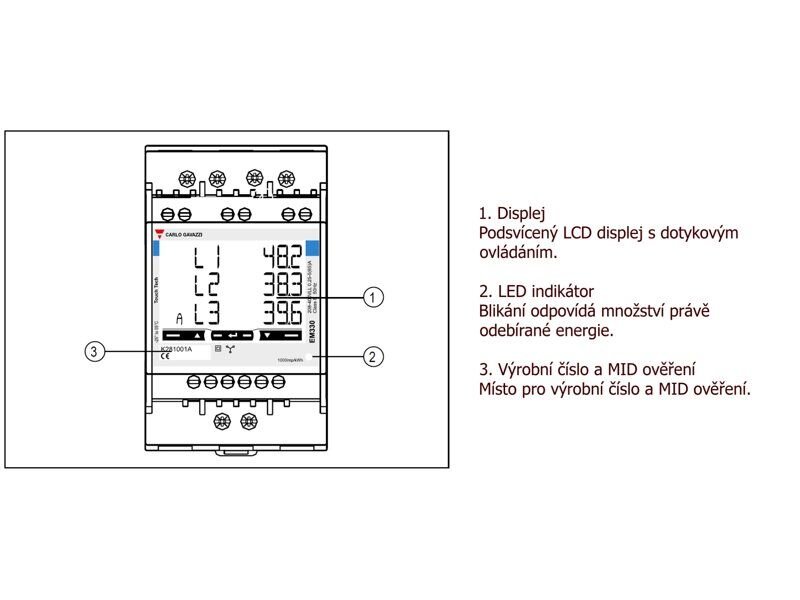 Kompatibilní s Victron energy Čtyřkvadrantní měření Kompatibilní s Navisys Neověřen pro fakturaci MID Podsvit displeje |