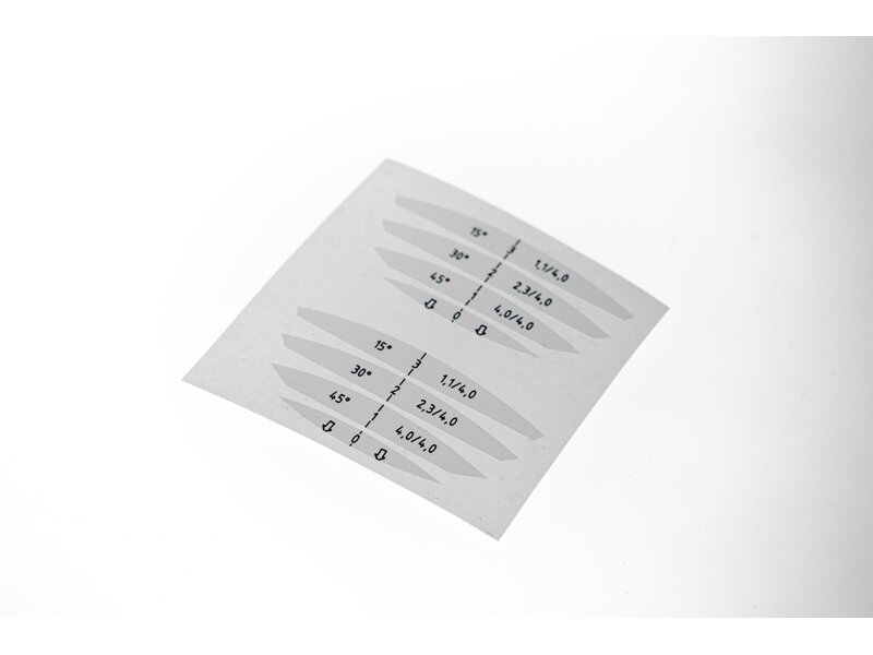 The reach area can be reduced at angles of 45, 30 and 15°.