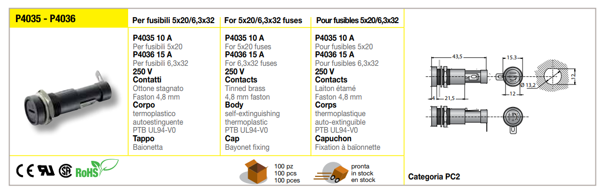 | Rozměr pojistky: | 6,3x32 mm |