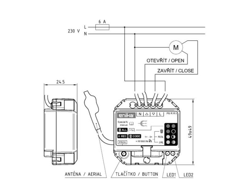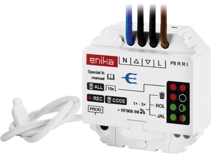 This receiver is designed to be built into a common electrical installation box (such as KU68). It is used to control blinds or jalousies. At the same time, it can be used as a signal repeater.