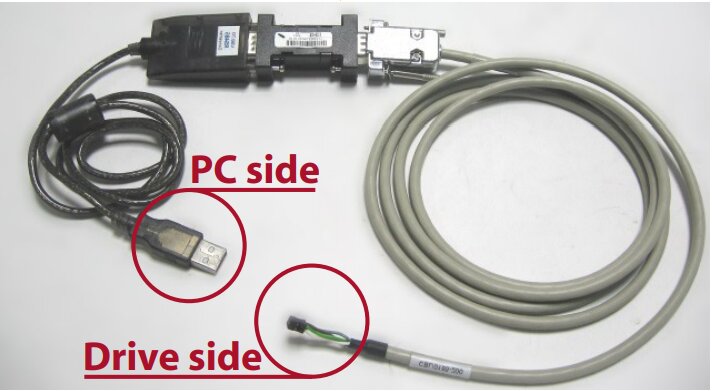 Software a komunikační kabel s převodníkem pro konfiguraci driveru SW4D2070T241